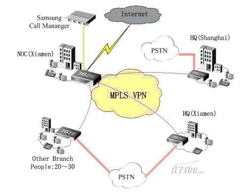 使用三星Ubigate iBG 3026作為主干設備,配置NAT,實現內網數據及外網的訪問。而分支機構均通過Ubigate iBG 2016使用現有的VPN與中心機房的Ubigate iBG 3026進行互聯,有效保證數據的暢通。