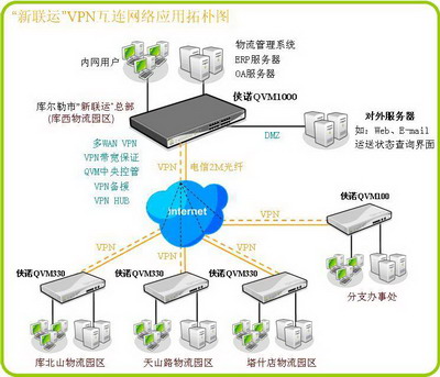 新疆新聯運公司基于前身為兵團農二師汽車運輸公司,已在巴州擁有悠長客貨運輸的歷史,加上其深厚的客貨運輸文化,且具備平均每年上交利稅上百萬元,經營實力堅強的中大型交通運輸企業(yè)。因此自2005年重新整合成立新聯運集團以來業(yè)務呈現高速成長,目前旗下共計有三大物流園區(qū),包含客貨運輸、貿易流通、旅游探險,建材能源、農副產品產易、駕培修理、房產開發(fā)等多元化經營項目。為了有效管理貨運、客運、旅游包車等廣大的業(yè)務范圍,新聯運集團開始尋求安全、高速、且相對建置成本較低的企業(yè)VPN網絡建設,希望憑借高效能的信息化建設,能夠加速以及更加輕松的管理龐大的業(yè)務信息流,進而成為全國優(yōu)質服務第一品牌的物流集團公司。