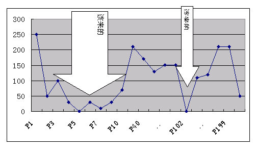 由表一可以看出,該企業(yè)只有250萬的庫存是完全配套的,大約有150萬的庫存無法配套,而生產(chǎn)每天需求200萬,為了不斷地滿足生產(chǎn)的需要,盡管現(xiàn)有庫存總數(shù)已達到400萬,還是需要不斷地補充物料,如P102,理論上可以滿足第二天100萬單位的生產(chǎn);但問題是,消耗了這100萬以后,其整體庫存結(jié)構(gòu)又變成了如下圖所示;盡管還有將近150萬的庫存,成品都是一件都無法生產(chǎn),沒辦法還得往里繼續(xù)補充庫存,如P40等料,還得遠遠不斷地往里補充,截止某一時刻,庫存結(jié)構(gòu)理論上可以如下: