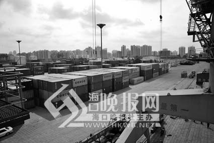海口港物流碼頭發(fā)展?jié)摿Υ?前景喜人。 記者 李漢仁 攝