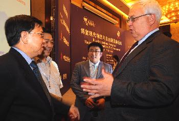 6月8日,博鰲亞洲論壇秘書長龍永圖(左一,LONG Yongtu, Secretary-General of Boao Forum for Asia)與參加論壇的哈薩克斯坦前總理捷列先科(左四,S. TERECHSHENKO, former prime minister of Kazakhstan)在交談。6月8日至9日,以"促進(jìn)資源整合,發(fā)展港口現(xiàn)代物流"為主題的博鰲現(xiàn)代物流與自由港國際論壇在浙江省寧波市舉行。此次論壇旨在推進(jìn)中國與世界在國際港口建設(shè)和現(xiàn)代物流領(lǐng)域的交流合作,謀求全球化背景下國際自由港和保稅區(qū)的資源整合,加速發(fā)展中國港口現(xiàn)代物流。新華社記者 譚進(jìn) 攝