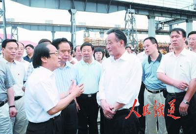 圖為吳邦國(guó)聽取劉志軍關(guān)于口岸運(yùn)輸情況的介紹