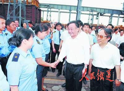今天下午,正在內(nèi)蒙古考察工作的中共中央政治局常委、全國(guó)人大常委會(huì)委員長(zhǎng)吳邦國(guó)和隨行的全國(guó)人大常委會(huì)副委員長(zhǎng)、秘書長(zhǎng)李建國(guó),在內(nèi)蒙古自治區(qū)黨委書記儲(chǔ)波、自治區(qū)代主席巴特爾的陪同下來(lái)到滿洲里站,看望問(wèn)候鐵路職工,檢查鐵路口岸運(yùn)輸工作。吳邦國(guó)充分肯定鐵路口岸運(yùn)輸工作取得的成績(jī),要求鐵路部門再接再厲,不斷擴(kuò)大口岸運(yùn)輸能力,為發(fā)展邊貿(mào)事業(yè)作出新的更大貢獻(xiàn)。鐵道部黨組書記、部長(zhǎng)劉志軍表示,一定要認(rèn)真學(xué)習(xí)貫徹吳邦國(guó)委員長(zhǎng)的重要指示,進(jìn)一步做好口岸運(yùn)輸工作,更好地服務(wù)國(guó)家周邊外交和邊貿(mào)工作。