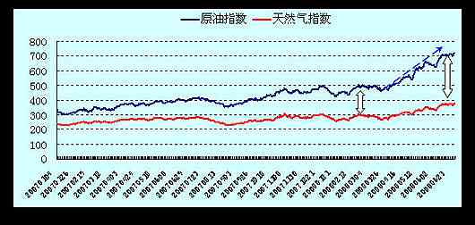 圖1:TOCOM原油和天然氣指數(2007年1月~2008年5月)