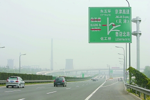 昨日,京津高速公路全線正式開通,五環路化工橋入口處的指示牌上顯示開通信息。