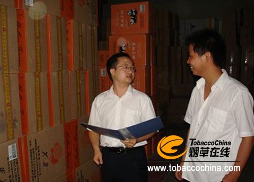 保管員在對庫房卷煙堆垛進(jìn)行檢查