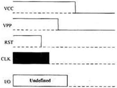 當信息交換結束或失敗時(例如,無卡響應或卡被移出),接口電路應按圖2.2所示時序釋放電路: