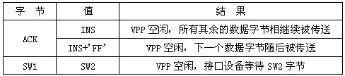 終端傳輸層根據(jù)卡片返回的過程字符和狀態(tài)字節(jié)執(zhí)行相應的操作,使讀寫器對數(shù)據(jù)的處理過程明朗清晰。卡片返回的過程字節(jié)和狀態(tài)字節(jié)跟應用層發(fā)送給卡的APDU(Application Protocol Data Unit,應用協(xié)議數(shù)據(jù)單元)和VPP使用等有關。表2.1為VPP未用時的終端傳輸層中返回的過程字節(jié)。