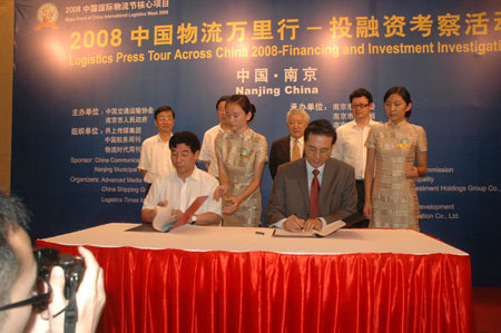 中國國際物流節(jié)組委會秘書長倪瑋與南京市政府副秘書長汪振和分別代表物流節(jié)組委會和南京市政府在協(xié)議書上簽字。至此,“2009中國國際物流節(jié)”正式落戶南京。