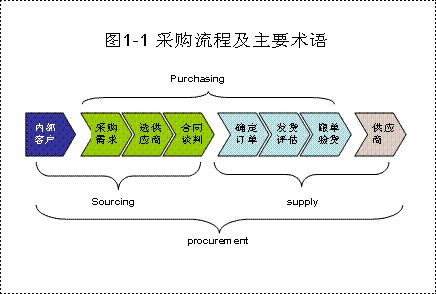 還有一類是以采購流程為線索的知識結構體系分析方法,他們對Purchasing、Procurement、Sourcing等術語有另外的定義。其中荷蘭著名的維爾教授(Arjan J van Weele)很具有代表性,他給出了下面的采購標準流程模型(見圖1-1),并把Purchasing定義為與操作性作業相關的流程,把Sourcing定義為根據內部客戶要求選擇供應商直到完成合同談判的流程,把Supply定義為與外部供應商打交道完成操作性作業的流程,而把全部采購流程通稱為Procurement。