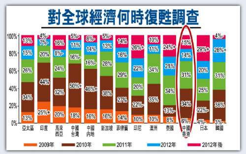 調查顯示,六成香港中小企認為全球經濟將于明年后才復蘇,高于亞洲區平均錄得的54%。在亞太區,印度及臺灣的中小企業在此方面最為樂觀,認為全球經濟將于今年或明年間復蘇,百分率分別為69%及68%。