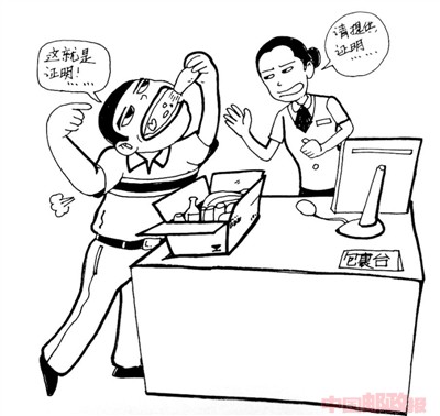 建議在營業(yè)柜臺備些有關禁限寄知識的宣傳資料,如遇到本期討論題中所述的情況,可將備好的宣傳品給用戶看,請其配合出示相關證明并到指定的郵局郵寄。因為當用戶對郵局的規(guī)定不理解時,一些用戶一定要看到書面規(guī)定才肯作罷。所以,這種出示宣傳資料的做法,有助于用戶理解營業(yè)員的做法和郵局的規(guī)定。(士心)