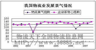 現(xiàn)代物流業(yè)有別于傳統(tǒng)的交通運(yùn)輸業(yè),它是由服務(wù)分銷業(yè)、運(yùn)輸業(yè)、裝卸業(yè)、倉儲(chǔ)業(yè)、郵政業(yè)、流通加工業(yè)、物流信息業(yè)、貨運(yùn)代理業(yè)、包裝業(yè)組成的復(fù)合型產(chǎn)業(yè),對國民經(jīng)濟(jì)運(yùn)行具有重要的支撐作用。按照國際標(biāo)準(zhǔn),我國物流產(chǎn)業(yè)現(xiàn)代化發(fā)展尚處于初步成長階段,存在巨大的發(fā)展?jié)摿σ裁媾R巨大挑戰(zhàn)。在我國物流現(xiàn)代化的發(fā)展中,物流企業(yè)的發(fā)展景氣程度如何、企業(yè)家信心如何、影響其快速發(fā)展的因素有哪些,是我國物流發(fā)展研究的重要課題。根據(jù)國家統(tǒng)計(jì)局全國企業(yè)景氣調(diào)查報(bào)告整理出的“2002-2007我國物流業(yè)發(fā)展景氣情況”見圖1: