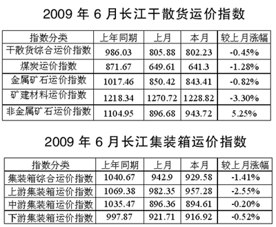 6月份,由于貨源增長緩慢,長江集裝箱運輸市場行情又顯疲態,上下水運價均有所下調。6月長江集裝箱綜合運價指數為929.55點,較上月下降1.42%。
