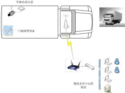 在貨車車箱頂部吊裝一臺FD961數字攝像機,同時通過攝像機USB接口連接移動硬盤,在車門頂部的中間位置安裝門磁報警設備與攝像機的RS-232接口相連,當車門打開時門磁報警設備觸發攝像機開始錄像,當車門關閉時停止錄像。