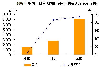 2008年,中國(guó)的冷庫(kù)容積為1500萬(wàn)立方米,而美國(guó)為7074萬(wàn)立方米,從人均容積來(lái)看,中國(guó)的人均冷庫(kù)容積不足美國(guó)的5%,由此可見(jiàn)中國(guó)的冷庫(kù)尚有待發(fā)展。