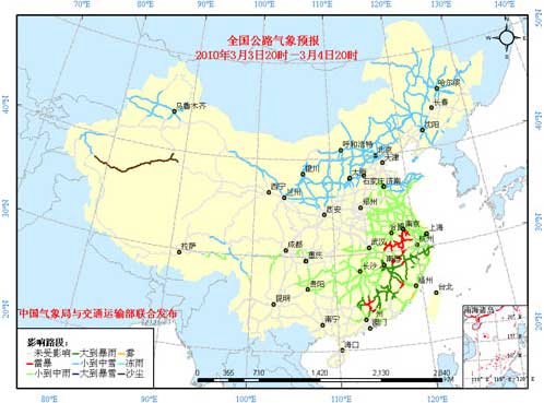 3月3日20時至3月4日20時,新疆西南部和天山地區、西藏東部、西北地區中東部偏北地區、內蒙古中東部、東北大部、華北中北部、黃淮中西部、川西高原西南部、云南西北部等地有小到中雪(雨)或雨夾雪,其中內蒙古東南部的部分地區有大雪;江淮大部、江漢南部、江南、廣西東北部、廣東中北部、貴州中北部等地有小到中雨或陣雨,其中,江南中東部、廣東北部等地的部分地區有大雨,局地暴雨;上述地區局部并伴有冰雹、短時雷雨大風等強對流天氣。南疆盆地的部分地區有揚沙或浮塵。