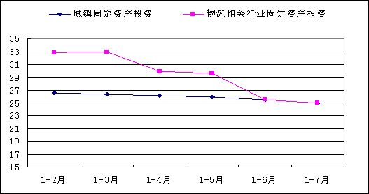 三是物流業(yè)固定資產(chǎn)投資繼續(xù)小幅回落。1-7月,物流相關(guān)行業(yè)固定資產(chǎn)投資完成額為1.4萬(wàn)億元,同比增長(zhǎng)24.9%,增幅比上半年回落0.6個(gè)百分點(diǎn)。其中,交通運(yùn)輸業(yè)完成額為1.1萬(wàn)億元,同比增長(zhǎng)25.5%,增幅比上半年回落0.7個(gè)百分點(diǎn)。今年以來(lái),物流相關(guān)行業(yè)固定資產(chǎn)投資完成額增幅持續(xù)回落,主要是受去年同期基數(shù)較高影響。2009年,由于國(guó)家加大了對(duì)物流相關(guān)產(chǎn)業(yè)基礎(chǔ)建設(shè)投資,我國(guó)物流業(yè)固定資產(chǎn)投資增幅一直明顯高于城鎮(zhèn)固定資產(chǎn)投資,最高的2009年6月,高出了29個(gè)百分點(diǎn),對(duì)物流業(yè)的企穩(wěn)回升產(chǎn)生了積極的促進(jìn)作用。今年以來(lái),物流業(yè)固定資產(chǎn)投資增幅與城鎮(zhèn)固定資產(chǎn)投資增幅的差距逐月縮小,到6、7兩個(gè)月已經(jīng)趨于一致。(參見(jiàn)圖3)