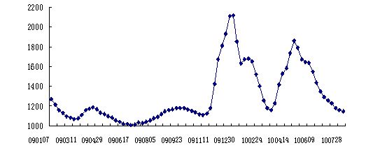 四是物流市場(chǎng)價(jià)格穩(wěn)中有降。中小型公路貨運(yùn)企業(yè)運(yùn)價(jià)經(jīng)過(guò)今年2月以來(lái)的持續(xù)下滑,7月出現(xiàn)回穩(wěn)跡象。大中型運(yùn)輸企業(yè)運(yùn)價(jià)較為平穩(wěn)。水路運(yùn)輸價(jià)格仍然低迷。7月末我國(guó)沿海散貨運(yùn)價(jià)指數(shù)報(bào)于1149點(diǎn),比6月末的1255點(diǎn)回落了106點(diǎn),比年內(nèi)最高的1860點(diǎn)回落了700余點(diǎn)。(參見(jiàn)圖4)
