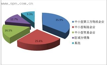 大型專業(yè)化物流企業(yè)是中國高端物流供應(yīng)鏈專業(yè)軟件市場的主要用戶,規(guī)模達到3.64億元,占整個高端物流供應(yīng)鏈專業(yè)軟件市場的比重達到49%;大型集團企業(yè)近年來對物流供應(yīng)鏈的重視程度不斷提升,2010年規(guī)模超過2.67億元,比重達到了36%;在國家政策激勵下,大型物流園區(qū)和物流配送基地的建設(shè)蓬勃發(fā)展,信息化投入不斷加大,規(guī)模達到1.11億元。