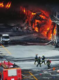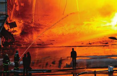 大火燃燒面積達4000平米,燃燒持續(xù)5個多小時,機油等易燃品還引發(fā)爆炸滅火
