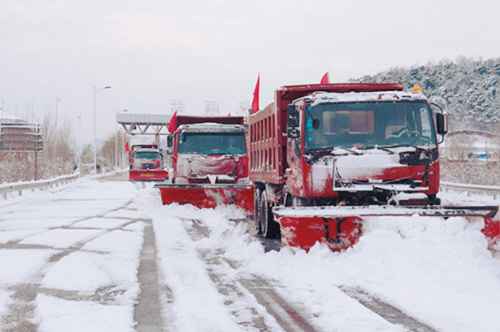 當(dāng)降雪厚度達(dá)到2厘米時(shí),各管理處便開始機(jī)械除雪循環(huán)作業(yè)。對(duì)一些特殊路段的除雪還有特殊要求,比如:丹阜高速公路沈桃機(jī)場路必須使用非氯鹽環(huán)保型融雪劑,降低對(duì)綠化植物的影響。