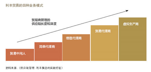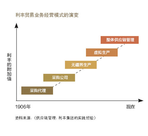 在美國任何一家商城里,都會有30%~40%的商家是利豐的客戶。消費(fèi)者們基本不會注意到利豐,但在各類服裝以及家庭用品背后,卻都是利豐在提供服務(wù)。供應(yīng)鏈的演變與發(fā)展造就了現(xiàn)在的利豐模式。正是依靠這種有效的“供應(yīng)鏈管理”,利豐能夠比競爭對手更快、更準(zhǔn)確、更靈活同時更低成本地為客戶提供產(chǎn)品,并將來自供應(yīng)鏈上的收益最大化。