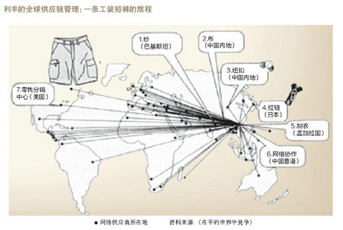隨著香港廠商將其生產(chǎn)工序和產(chǎn)業(yè)向全球各地擴(kuò)散,利豐的貿(mào)易經(jīng)營模式進(jìn)一步演變,成為“分散生產(chǎn)”的管理者。在分散生產(chǎn)模式下,利豐在香港從事諸如設(shè)計(jì)和質(zhì)量控制等高附加值的業(yè)務(wù),而把附加值較低的業(yè)務(wù)分配到其他最適合的地方進(jìn)行生產(chǎn),使產(chǎn)品實(shí)現(xiàn)真正的全球化。對此,利豐研究中心所著《供應(yīng)鏈管理:利豐集團(tuán)的實(shí)踐經(jīng)驗(yàn)》以生產(chǎn)一個毛公仔為例加以說明:利豐綜合價格和質(zhì)量等各方面因素,從韓國購買毛公仔的周邊布料,從中國內(nèi)地購買毛公仔的填塞料,在所有的生產(chǎn)原料采購?fù)戤吅螅械闹圃煸趧趧恿Τ杀颈容^低的中國青島進(jìn)行。正如馮國經(jīng)所說:“對分散生產(chǎn)進(jìn)行管理是一種真正的突破,這迫使我們不僅需要精通物流和運(yùn)輸,亦要懂得剖析價值鏈。”