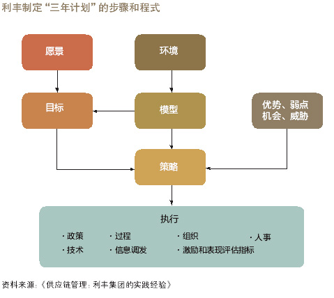 “三年計(jì)劃”的最初意念,是來自中國政府關(guān)于國家發(fā)展的五年計(jì)劃。自中華人民共和國建立以來的數(shù)十年間,國家一直對經(jīng)濟(jì)發(fā)展制定五年計(jì)劃。馮氏兄弟認(rèn)為,這種體系“可以使公司向前看,但又不會看得太遠(yuǎn)。”一個固定年期的計(jì)劃有助企業(yè)達(dá)成中長期的目標(biāo),使企業(yè)有計(jì)劃地成長。這個固定年限的計(jì)劃可使企業(yè)訂立特定的經(jīng)營目標(biāo),并按照目標(biāo)有步驟、有組織地進(jìn)行,并使企業(yè)轉(zhuǎn)型和改造成為企業(yè)持續(xù)工作的一部分。但是,如果按照國家以五年為期做計(jì)劃,對企業(yè)來說年期太長,有可能令企業(yè)跟企業(yè)快速轉(zhuǎn)變的市場脫節(jié),計(jì)劃脫離實(shí)現(xiàn)環(huán)境;而如果計(jì)劃的年期只有一兩年的話,計(jì)劃目標(biāo)就會太短視,缺乏讓計(jì)劃深化和貫徹的時間。因此,取其平衡,以三年為計(jì)劃年期:第一年是計(jì)劃和開展;第二年是整個企業(yè)努力落實(shí)計(jì)劃,爭取達(dá)到目標(biāo);第三年達(dá)到目標(biāo)并做檢討。三年給予企業(yè)各個部門回轉(zhuǎn)的空間,應(yīng)付與計(jì)劃有所不同的外部環(huán)境轉(zhuǎn)變,并把握最適合的時機(jī)去達(dá)到目標(biāo)。