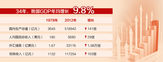 從發(fā)展速度看,1979年到2012年,我國國內(nèi)生產(chǎn)總值年均增長9.8%,而同期世界經(jīng)濟(jì)年均增速只有2.8%。“我國高速增長期持續(xù)的時間和增長速度都超過了經(jīng)濟(jì)起飛時期的日本和亞洲‘四小龍’,創(chuàng)造了人類經(jīng)濟(jì)發(fā)展史上的