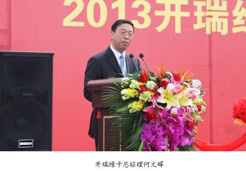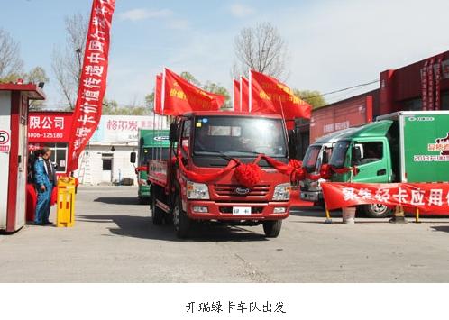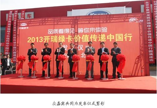 2013年4月13日,以"品質看得見 等你來體驗"開瑞綠卡價值傳遞中國行活動在北京正式啟動。奇瑞汽車開瑞事業部副總經理、開瑞綠卡總經理何文輝,開瑞卡車銷售公司總經理陳洪平,采埃孚集團商用車中國區總裁戴章煜,康明斯(中國)投資有限公司輕型發動機業務銷售總監馬驥,采埃孚商用車事業部卡車業務單元中國區負責人韋國慶,及開瑞綠卡北京、天津、石家莊等經銷商領導出席此次活動。