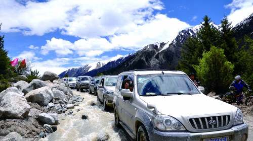 許,經(jīng)過官兵們晝夜奮戰(zhàn),川藏公路然烏湖段恢復(fù)通車(如圖)。