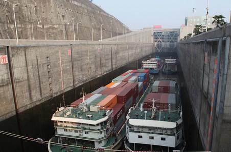“暢行三峽一路陽光”,三峽船閘的高效運行,讓水運成為三峽庫區(qū)貨運的首選,由原來占庫區(qū)貨物運輸周轉(zhuǎn)量的30%增加到70%,千里峽江成為連通中國東中西部發(fā)展的“水上高速公路”,加速推進上游水運和沿江經(jīng)濟快速發(fā)展。航運已成為重慶市第一大運輸方式,為重慶市90%的外貿(mào)物資運輸提供運輸保障,在庫區(qū)經(jīng)濟社會發(fā)展中發(fā)揮了重要支撐作用。