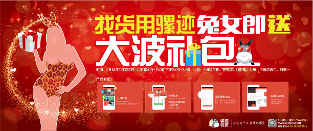 本活動線上部分會提前開啟,關注騾跡官方微信公眾號(微信號:muletek),輸入關鍵詞“兔女郎活動”,按圖文要求操作,就有機會獲得Iphone 6、充電寶或話費。參與人數(shù)越多,中獎人數(shù)越多!