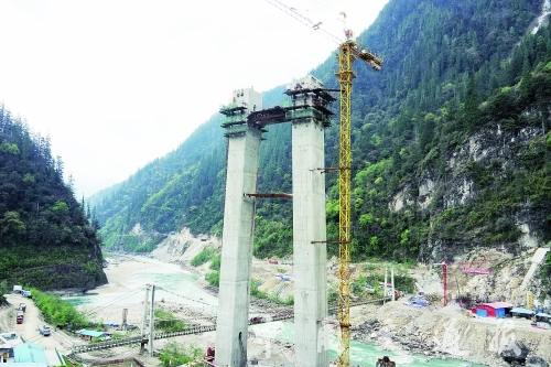 日前,川藏公路105道班至通麥整治改建項目控制性工程——通麥特大橋主索塔成功封頂(如圖),標志著大橋建設進入一個新階段。通麥特大橋為單塔單跨鋼桁架懸索橋,橋長256米,門式索塔,主塔高59.5米。主索塔的全面封頂,為橋梁上部結構施工贏得了時間,為今年年底實現(xiàn)全橋貫通奠定基礎。