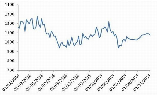圖 1 2015年以來各周中國公路物流運價指數