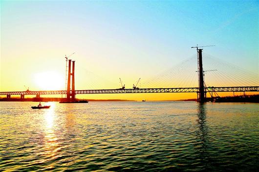昨日10時(shí)30分,隨著主橋鋼梁最后一塊橋面板被吊裝到位,蒙西華中鐵路荊州長(zhǎng)江公鐵兩用特大橋?qū)崿F(xiàn)主橋順利貫通。該橋全長(zhǎng)6317.822米,其中主橋?yàn)殚L(zhǎng)1458.85米,主跨518米的雙塔鋼桁梁公鐵兩用斜拉橋。