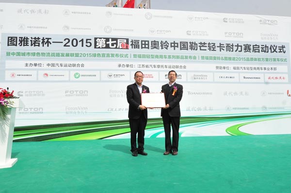 授予福田輕型商用車2015中國綠色物流戰略發展聯盟輪值理事單位