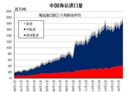 鐵礦石進口:今年中國海運進口量增長的很大一部分是由進口鐵礦石所貢獻的。今年以來國內鋼材市場逐步回暖,而國產礦產量大幅下滑,國內鋼企對進口礦的需求大幅增加。與此同時,受“供給側改革”和環保的影響,以及其他原料成本上升,進一步刺激了國內鋼廠對進口鐵礦石(尤其是高品位進口鐵礦石)的需求。