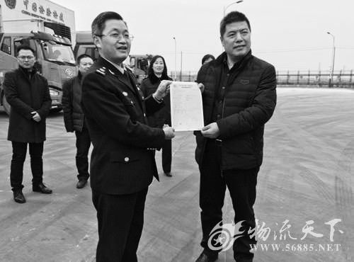 圖片說明2:鄭州出入境檢驗檢疫局局長張宏強向鮮易控股頒發入境貨物檢驗檢疫證明
