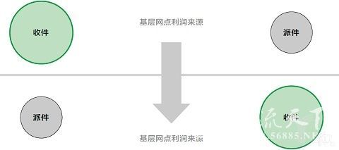 快遞是網絡型組織,“三通一達”最開始組建網絡的時候,派件都是免費的。后來隨著地區間業務的不均衡性加大,有償派費開始推行。派費設計的初衷是為了保障派件網點的基本開銷,網點要想賺錢,最終還是要靠收件。但快遞發展至今,越來越多的網點淪為派件網點,即派件量明顯大于收件量。