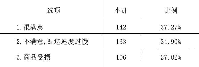 服務水平低下。在快遞配送服務方面,由于“雙11”期間貨物量的急劇增加,導致各方面都處于混亂狀態,客戶的商品得不到及時跟蹤,送貨上門服務無法保證,服務熱線無法接通,更有投訴過后依然無法解決,存在貨品丟失等等問題,最終導致了“雙11”期間的快遞服務得不到顧客的認可。