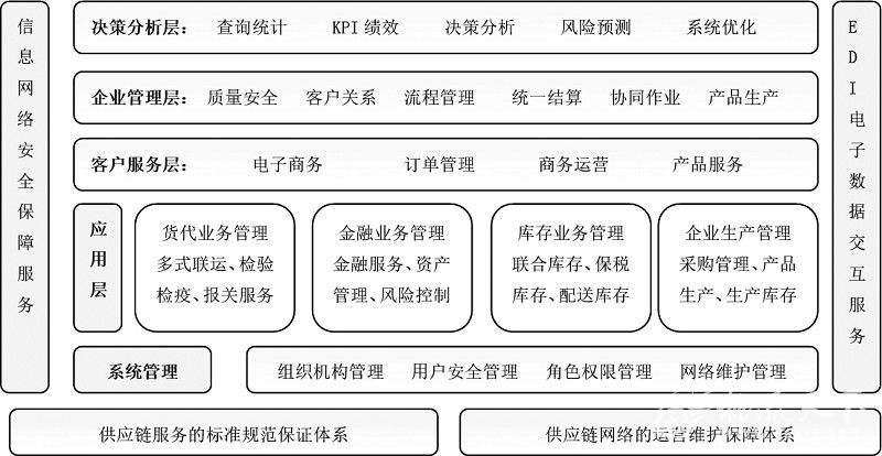供應鏈信息化管理平臺總體上分為多個層次進行設計,包括:底層架構、標準基礎代碼平臺、系統基礎管理、應用系統層、企業管理層、決策分析層、客戶服務層以及EDI數據交換平臺等部分。企業應該盡可能地選擇供應鏈伙伴作為信息化合作對象,實施供應鏈信息化。這是因為企業的根本目標在于追求自身利潤的最大化,而這一目標的實現,是通過很好地滿足下游企業的需求來實現的,在這一過程中,還必須依賴于上游企業的供應。所以供需關系是聯結企業與企業的最緊密的關系。每個企業都應該從供需匹配的視角來思考問題。對于供應鏈中的一個節點企業來說,它很關心來自于上游的供應信息和下游的需求信息。如果能夠充分了解這些信息,它就能有的放矢地進行生產、運輸和銷售等方面的安排。平臺總體架構如下圖所示: