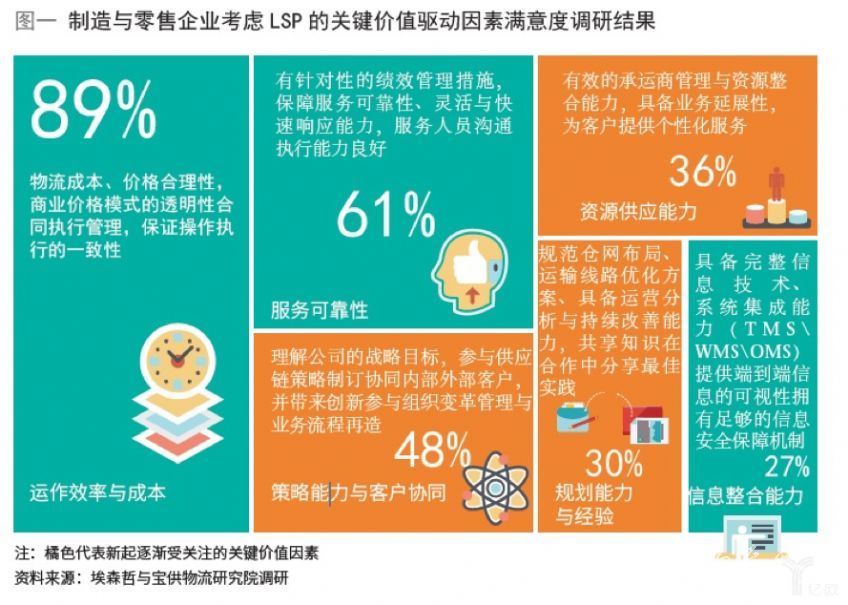 為了更好地展示制造與零售業(yè)對物流服務(wù)的需求已不同于以往,以及第四方物流為何能在未來的物流市場發(fā)展中得以快速崛起,埃森哲與寶供物流研究院針對制造與零售企業(yè)在選擇物流服務(wù)供應(yīng)商(LSP)時(shí)的關(guān)鍵價(jià)值驅(qū)動(dòng)因素進(jìn)行了專項(xiàng)調(diào)研。