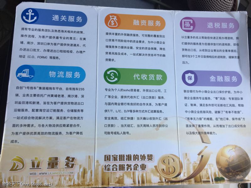 廣州市立量多企業服務有限公司(亞快集團旗下),是一家外貿進出口綜合代理服務公司,從事外綜服務中貨物出口前后代收貨款的環節,代收外匯貨款業務必跟客戶簽訂外綜協議,外綜服務還包含以下服務內容:出口代理退稅服務、代收外匯貨款、集裝箱運輸服務、代理食品等進口服務、倉儲運輸配送服務、信用證融資等金融服務、產地證各種證明書等。