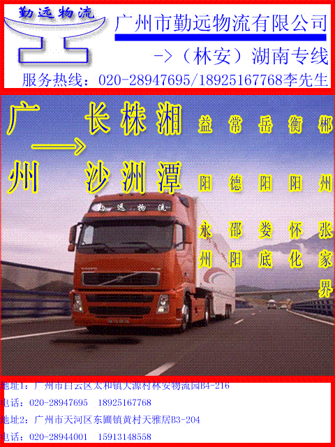 廣州勤遠物流有限公司,廣州,佛山,東莞,清遠->湖南湘潭,湘鄉,韶山,株洲,長沙,婁底,常德,益陽,衡陽等湖南全境貨運專線
